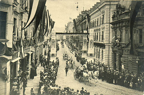 Kaiser Franz-Josef beim Durchfahren der Gebirgsstraße.