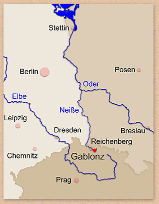 Gablonz liegt in der Nähe des heutigen Länderdreiecks Deutschland - Polen -